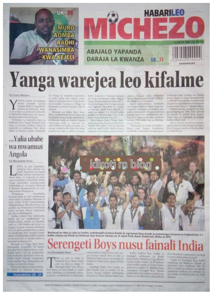 Magazeti ya Leo ijumaa ya tarehe 20 may 2016