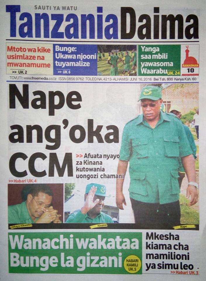 Magazeti ya Leo alhamisi ya tarehe 16/06/2016