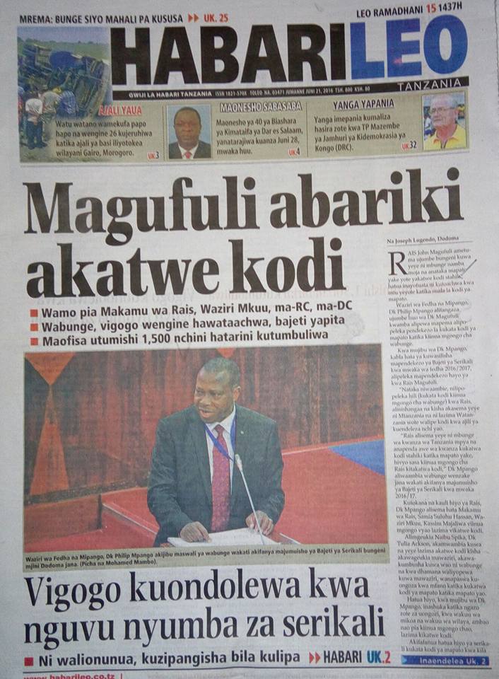 Magazeti ya Leo jumanne ya tarehe 21/06/2016