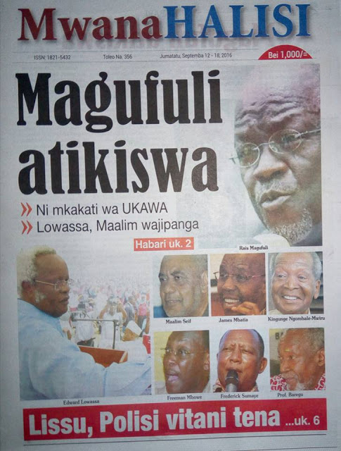 Magazeti ya Leo tarehe 12/092016